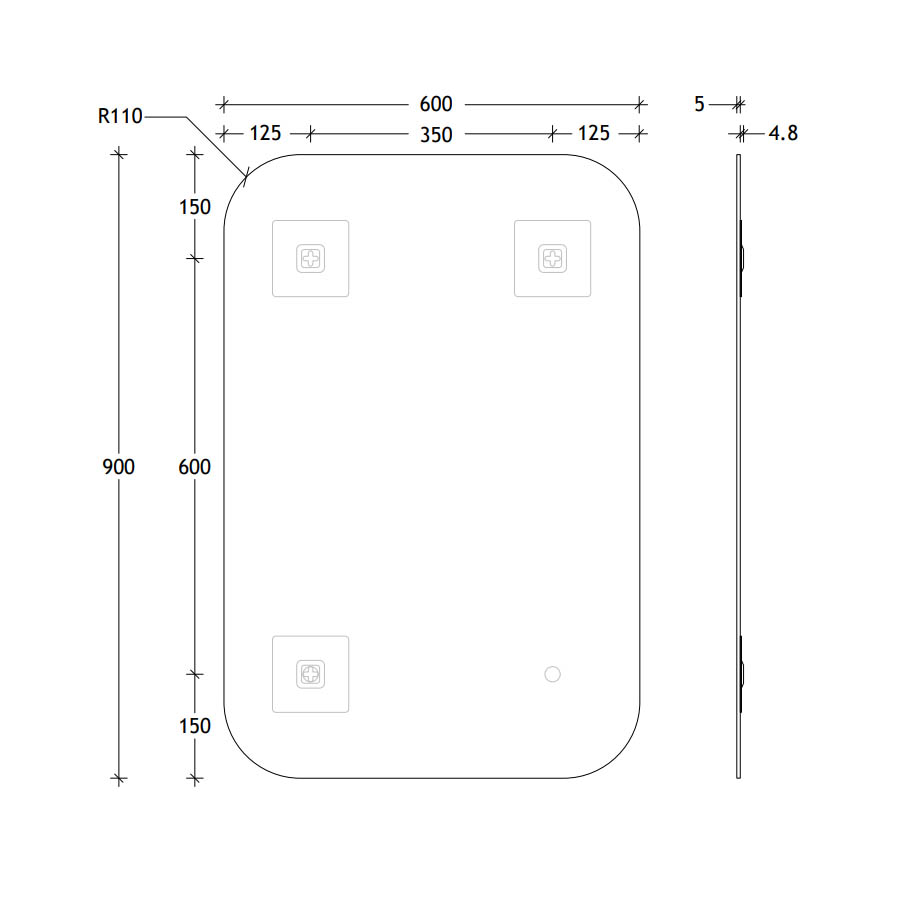 Dimensions: 600 W x 900 H x 5mm D