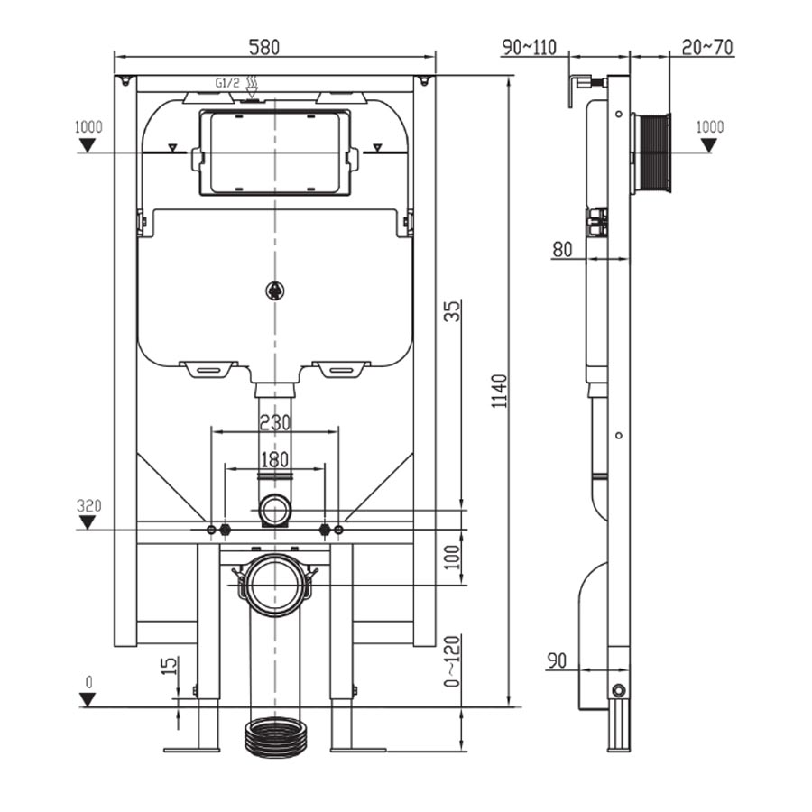 Argent 80 In Wall Cistern and Frame – Mechanical