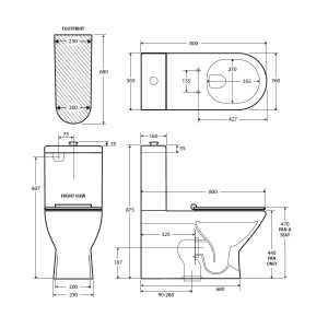 Dimensions: 360 W x 875 H x 800mm D – S-trap set-out 90-280mm P-trap set-out 187mm