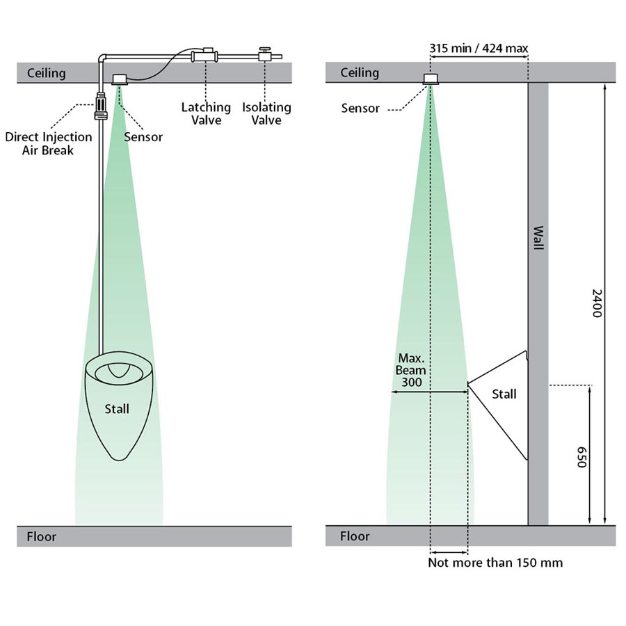 • Single stall flushing system, Automatic & touch-free.
