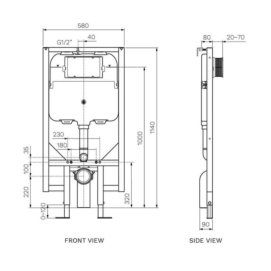 Argent 80 In Wall Cistern and Frame - Mechanical