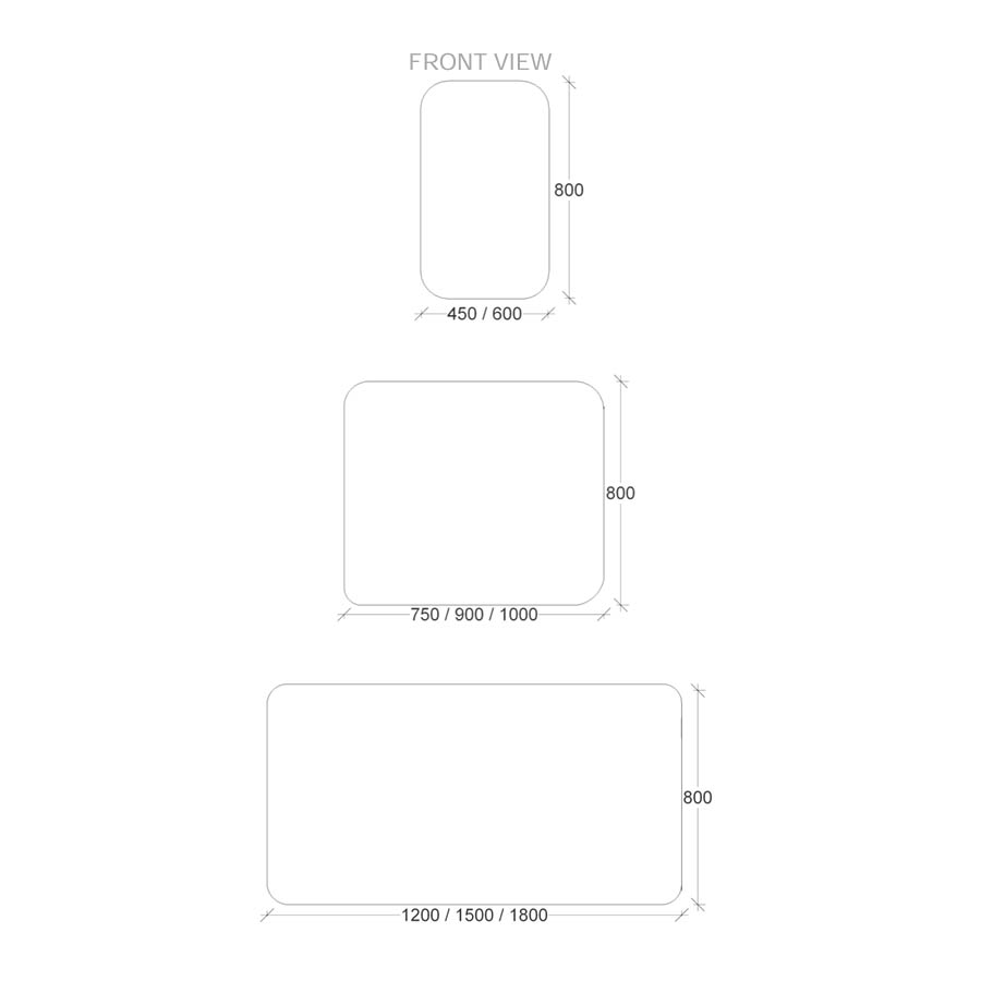 Dimensions: 450mm/600mm/750mm/900mm/1000mm/1200mm/1500mm/1800mm W x 800mm H