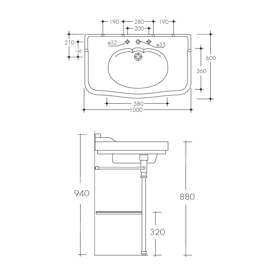 Studio Bagno Impero 100 Console Basin 1 Taphole