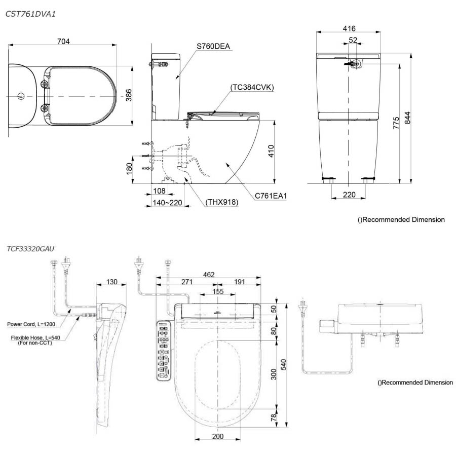 Dimensions: 462 W x 844 H x 704mm D – S-Trap set-out 140-220mm P-Trap set-out 180mm