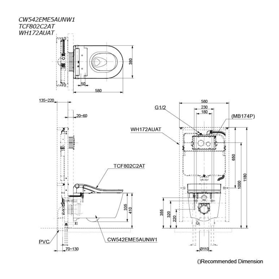 • WH172AUAT: Concealed cistern w/frame (4.5L / 3L).