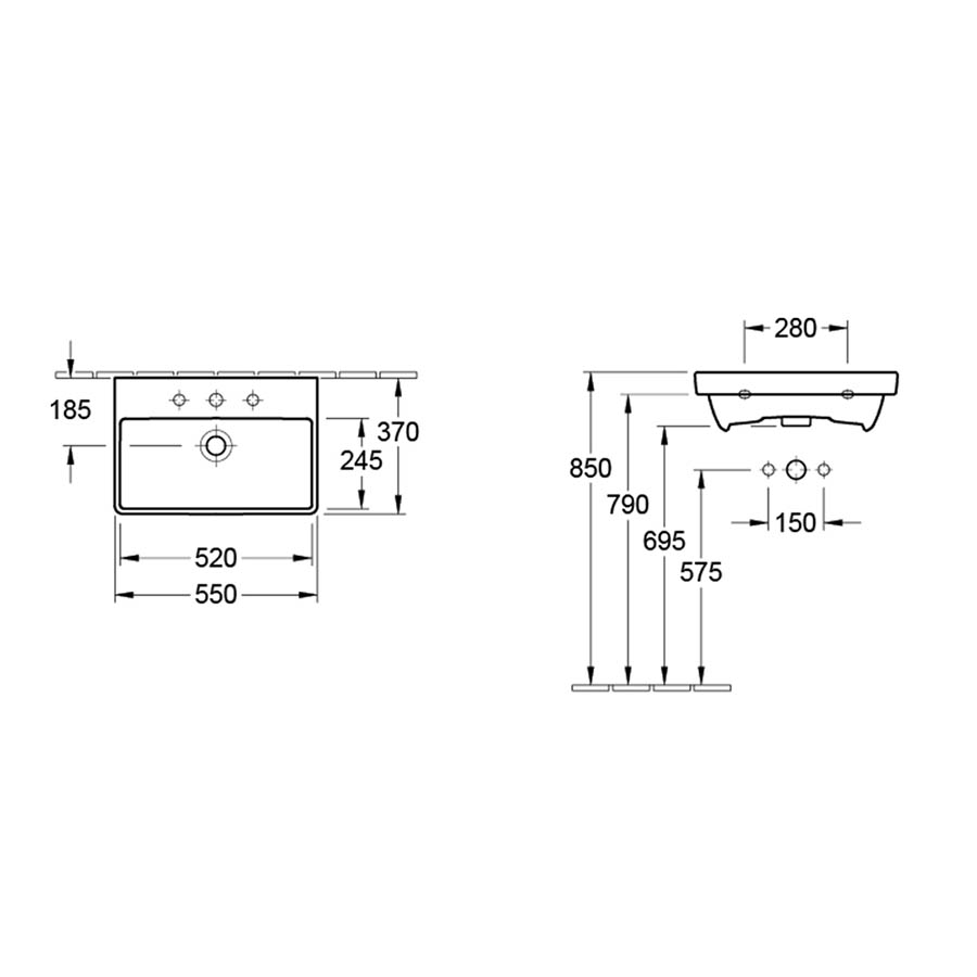 Villeroy & Boch Avento 550 Wall Basin with Overflow 1TH 4A005501CB