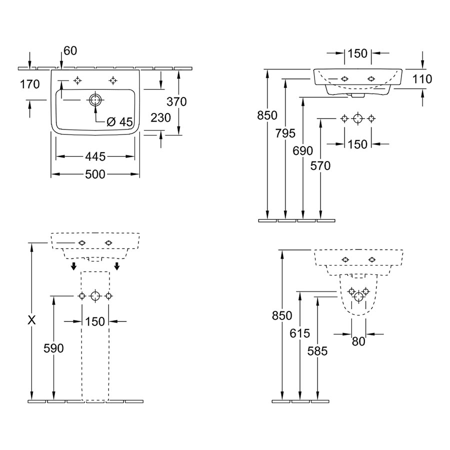 Villeroy & Boch O.novo 2.0 500 Wall Basin, without Overflow